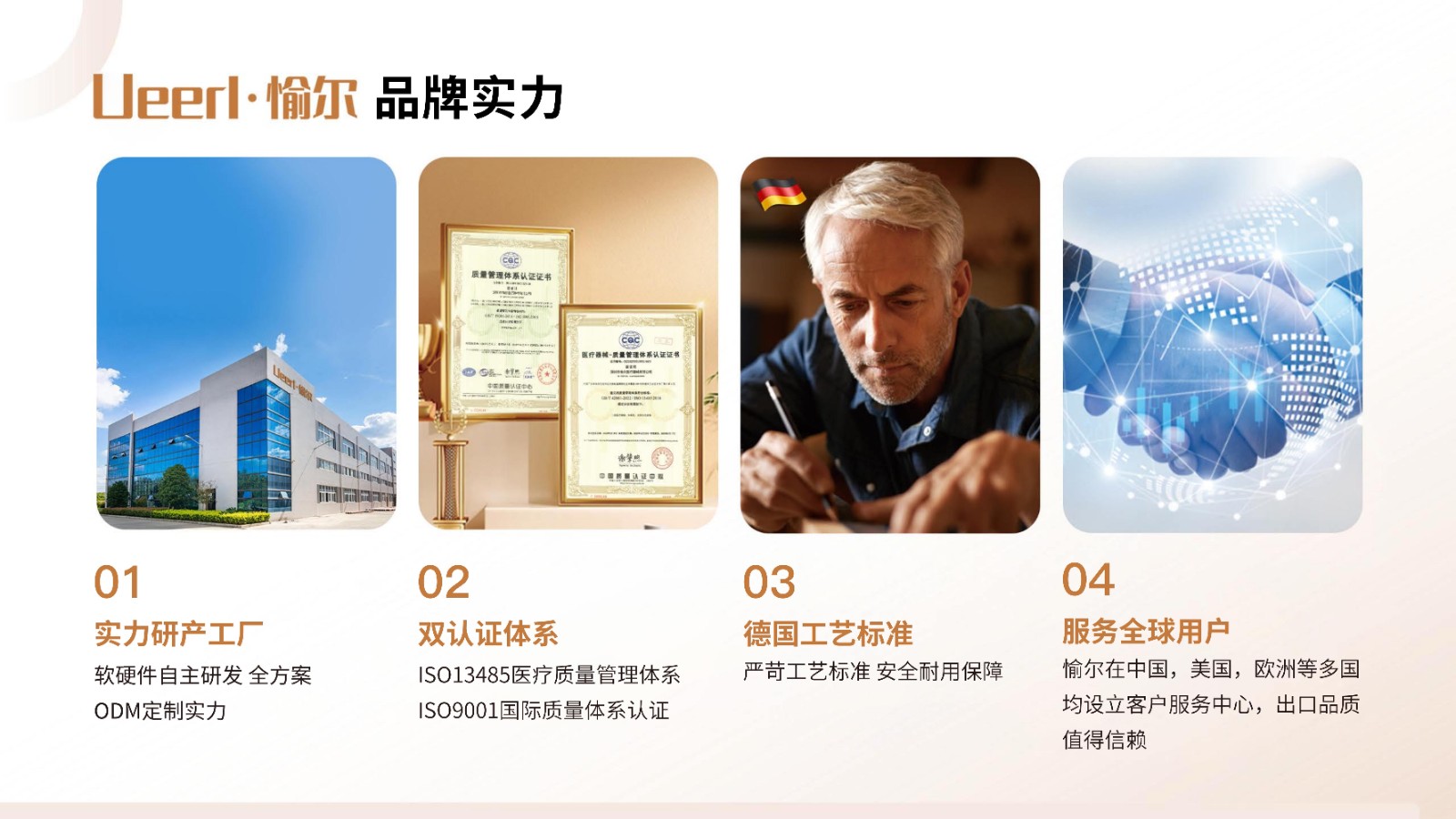 愉爾(英文名:Ueerl)是深圳市愉爾醫(yī)療器械有限公司旗下專注民用微高壓氧艙的品牌。作為國(guó)家高新技術(shù)企業(yè),愉爾以德國(guó)精工技術(shù)、智能氧療系統(tǒng)及高端定制服務(wù)為核心競(jìng)爭(zhēng)力。