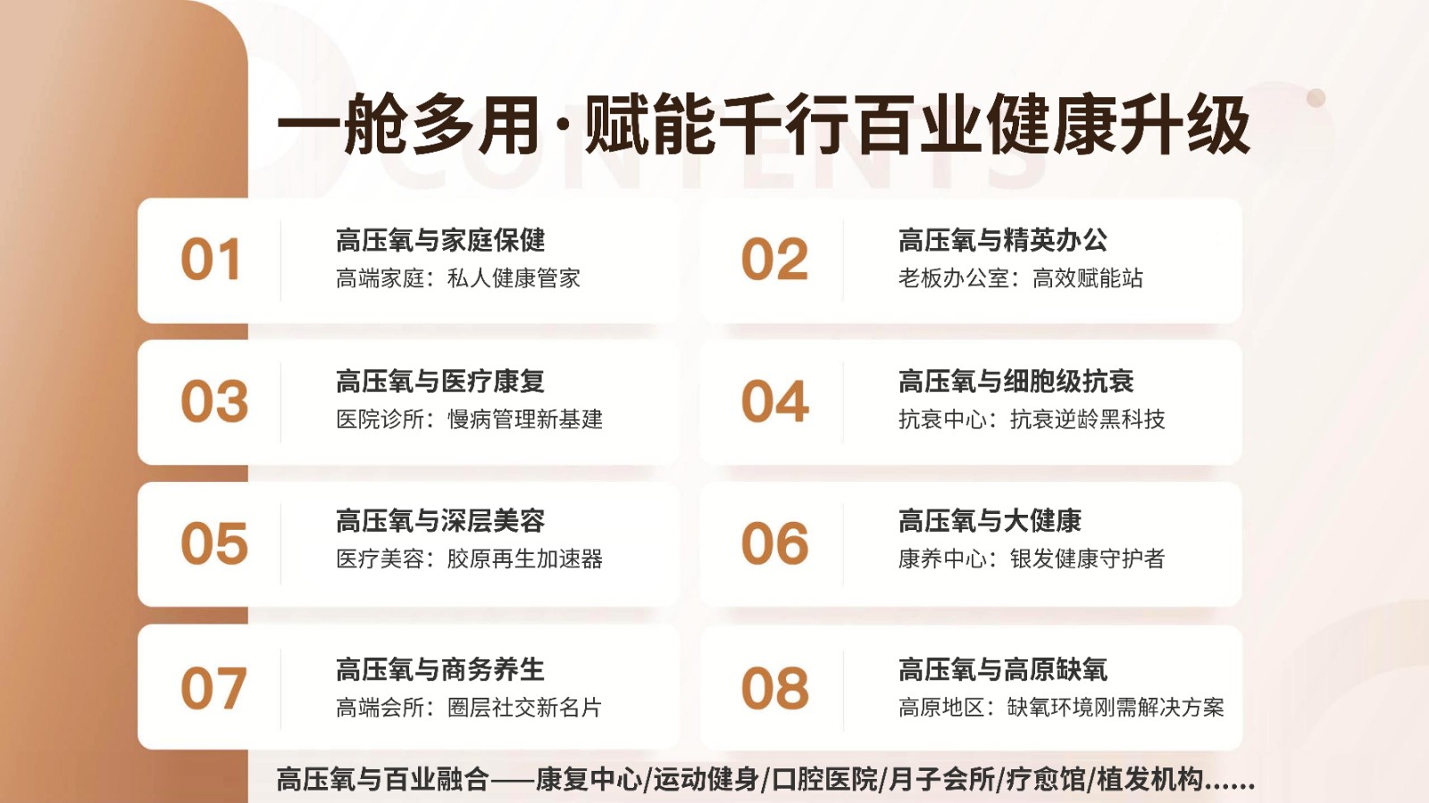 秉承"讓生命煥發(fā)無(wú)限生機(jī)"的使命,致力于為用戶提供安全、舒適、有效的微高壓氧艙產(chǎn)品,推動(dòng)全球生命健康事業(yè)發(fā)展。