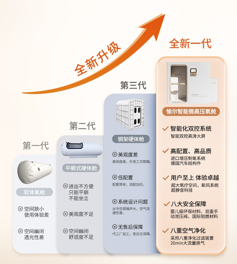 總的來說,高壓氧艙雖然價格不菲,但它所帶來的健康和美容收益也是其他設備難以替代的。無論是為了醫學治療還是美容抗衰,高壓氧艙都展示出它獨特的價值。因此,對于那些有能力且有需求的人士來說,高壓氧艙無疑是一個值得投資的選擇。希望通過本文,你對高壓氧艙的價格和價值有了更加清晰的認識,同時也更加理解為什么“愉爾醫療”這樣專業的品牌在市場上能夠占據一席之地。